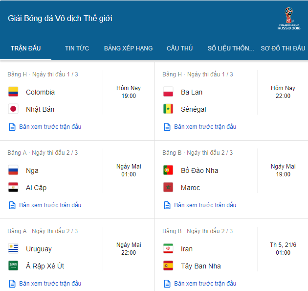 Tham khảo thêm lịch thi đấu world cup hôm nay 19-06-2018